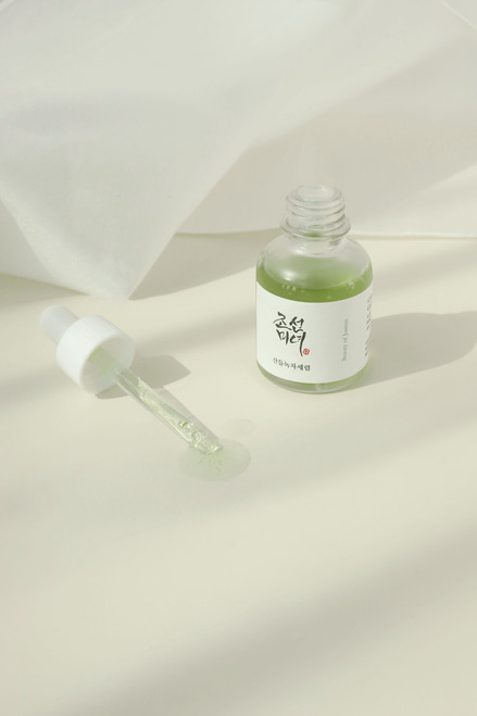 The Beauty of Joseon Calming Serum: Green Tea + Panthenol soothes and hydrates skin. Benefits: anti-aging, brightening, healing, hydrating. Suitable for all skin types.